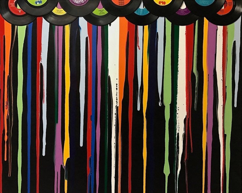 In questo mese di luglio che si sta rivelando ricchissimo di eventi, di incontri e di sorprese, ho avuto modo anche di conoscere Mattia Consonni, artista originario di Meda che, spinto dalla sua passione per la musica e per i dischi in vinile, realizza quadri e installazioni utilizzando i dischi a 33 e 45 giri come “materia prima”. La sua attività nasce dall’incrociarsi di due diverse esigenze, vale a dire esprimere visivamente il suo amore per diversi generi musicali, nel contempo esorcizzando e sublimando lo stress delle incombenze quotidiane.