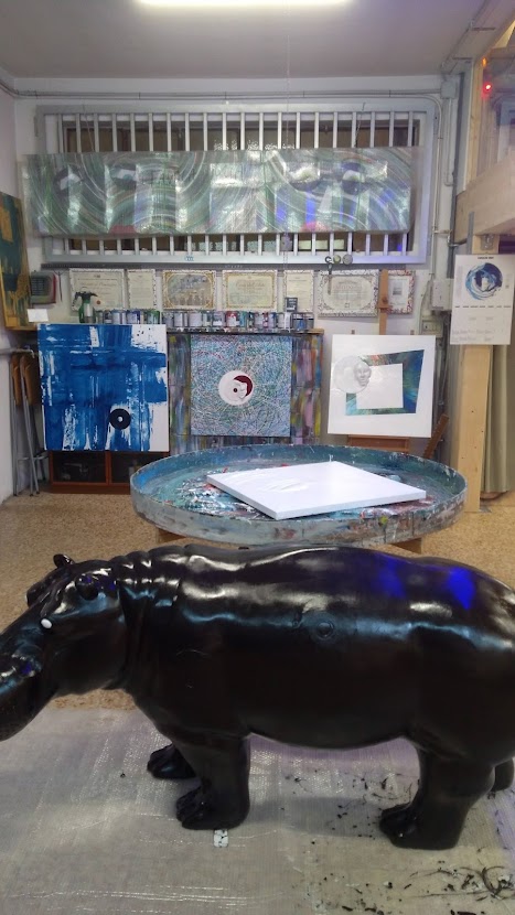 Avevo già visto alcuni suoi lavori in una mostra collettiva a Meda, circa un mese fa, e mi ero ripromessa di approfondire ulteriormente la mia conoscenza di questo personaggio e della sua originale e multiforme attività artistica. Così, dopo aver letto un’intervista da lui rilasciata al sito Art Over Covers, al quale collaboro, ho contattato Mattia e sono andata a trovarlo nel suo atelier medese.