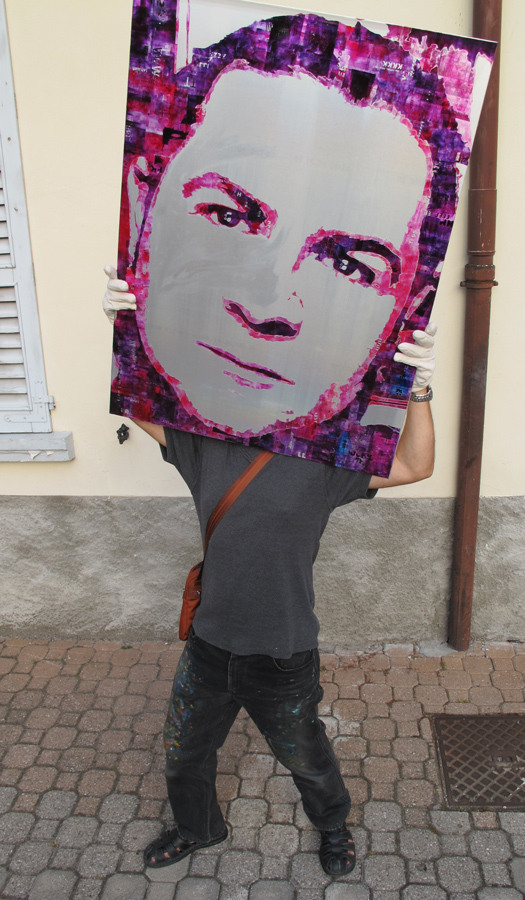 Ultimamente l’artista sta sperimentando una sorta di fusione delle due tecniche, abradendo a spazzola la superficie metallica, e successivamente lavorando con i colori, in questo modo creando un effetto quasi olografico, con i soggetti che sembrano muoversi di fronte allo spettatore.