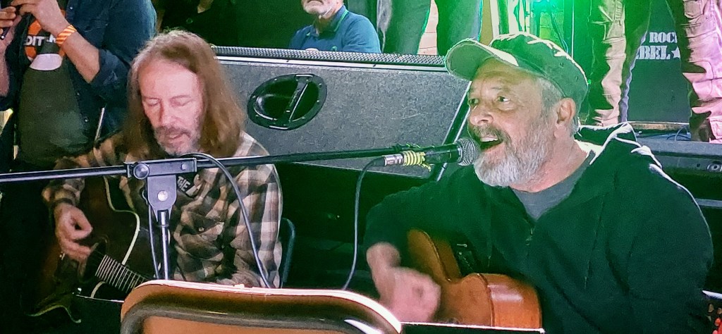 I fratelli Sandro e Marino Severini dei Gang hanno poi creato un momento magico: non sono saliti sul palco, ma si sono seduti in mezzo al pubblico per un set acustico, invitando gli spettatori ad unirsi a loro nell’intonare le canzoni, dando vita ad una session di voci e cuori commossi e resistenti. Hanno dimostrato di essere artisti straordinari, con il semplice gesto di lasciarsi circondare dagli ammiratori e di condividere con loro brani memorabili, come Bandito senza tempo, Comandante, Kowalsky,