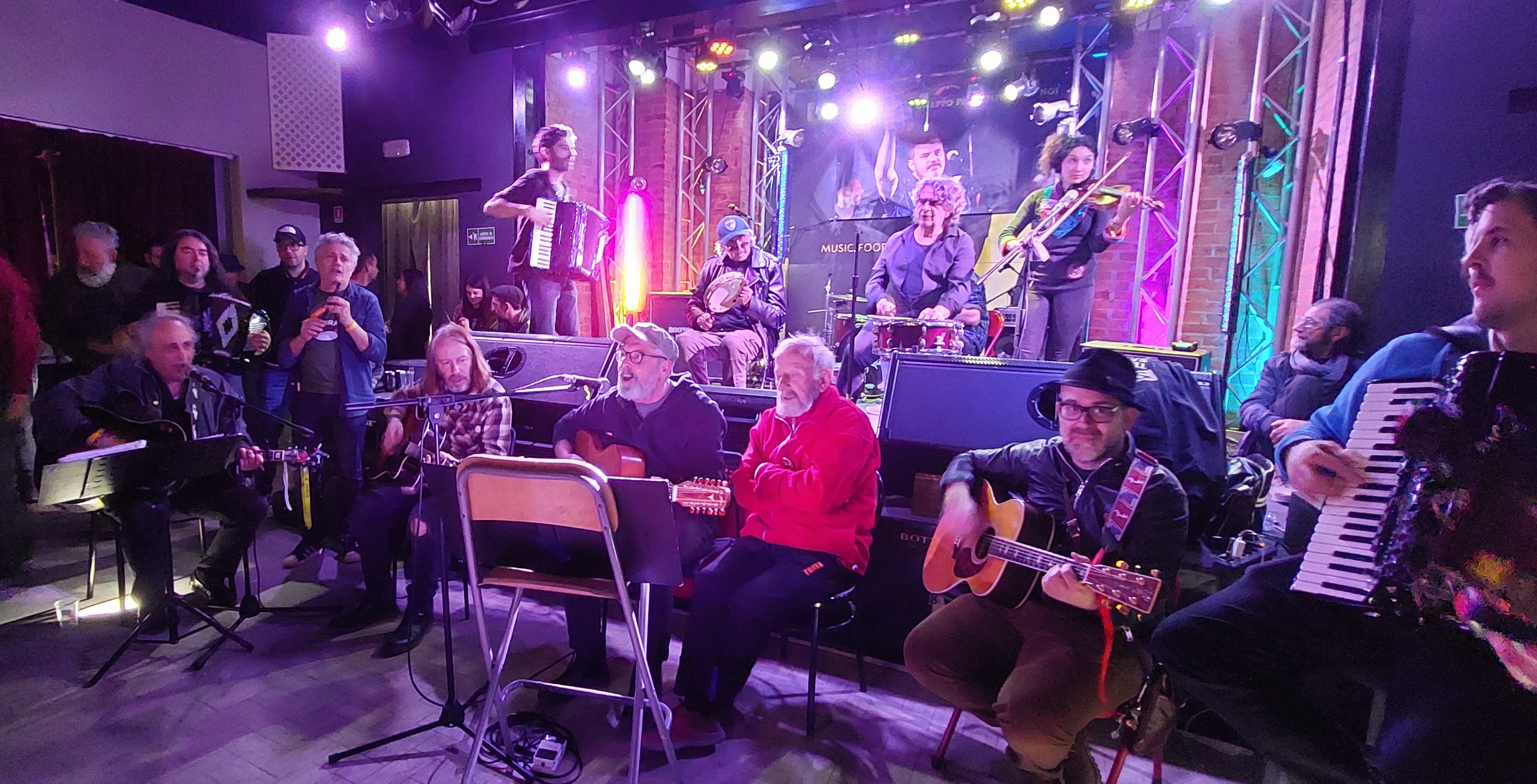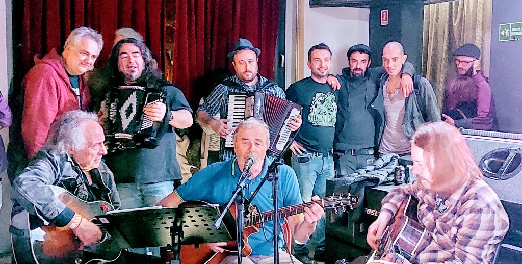 “Non ricordo l’anno e neppure il luogo. Ricordo i tavoli di plastica e le tovaglie mal assortite di una festa popolare, l’odore di carne alla griglia e l’afa spietata della pianura. Poi c’era Gnappo: la sua chitarra e i suoi modi di fare spontanei, che sono anche anche i nostri. In una domenica di marzo abbiamo provato a stringerci per ritrovare quelle modalità e fare un po’ di cinema…quello che a te, caro Gnappo, piaceva tanto. Tu sei stato, come sempre, lì, sotto e sopra al palco con il bicchiere alzato; noi abbiamo fatto del nostro meglio per tenere il tuo passo. C’eravamo tutti, ognuno con la sua musica: dal combat punk dei Guacamaya, passando per lo ska dei Luchaskalientes, fino ad arrivare alle canzoni popolari di Sandro e Marino e dei tuoi Ciapa No. Non mancava nessuno, nemmeno tu! Tanto lo sappiamo che ti ritroveremo sempre lì; li, dove la notte incontra il giorno, appoggiati al bancone di un bar, tra le note di una canzone popolare e la musica di una chitarra scordata…caro Gnappo, ci vediamo lì!“
