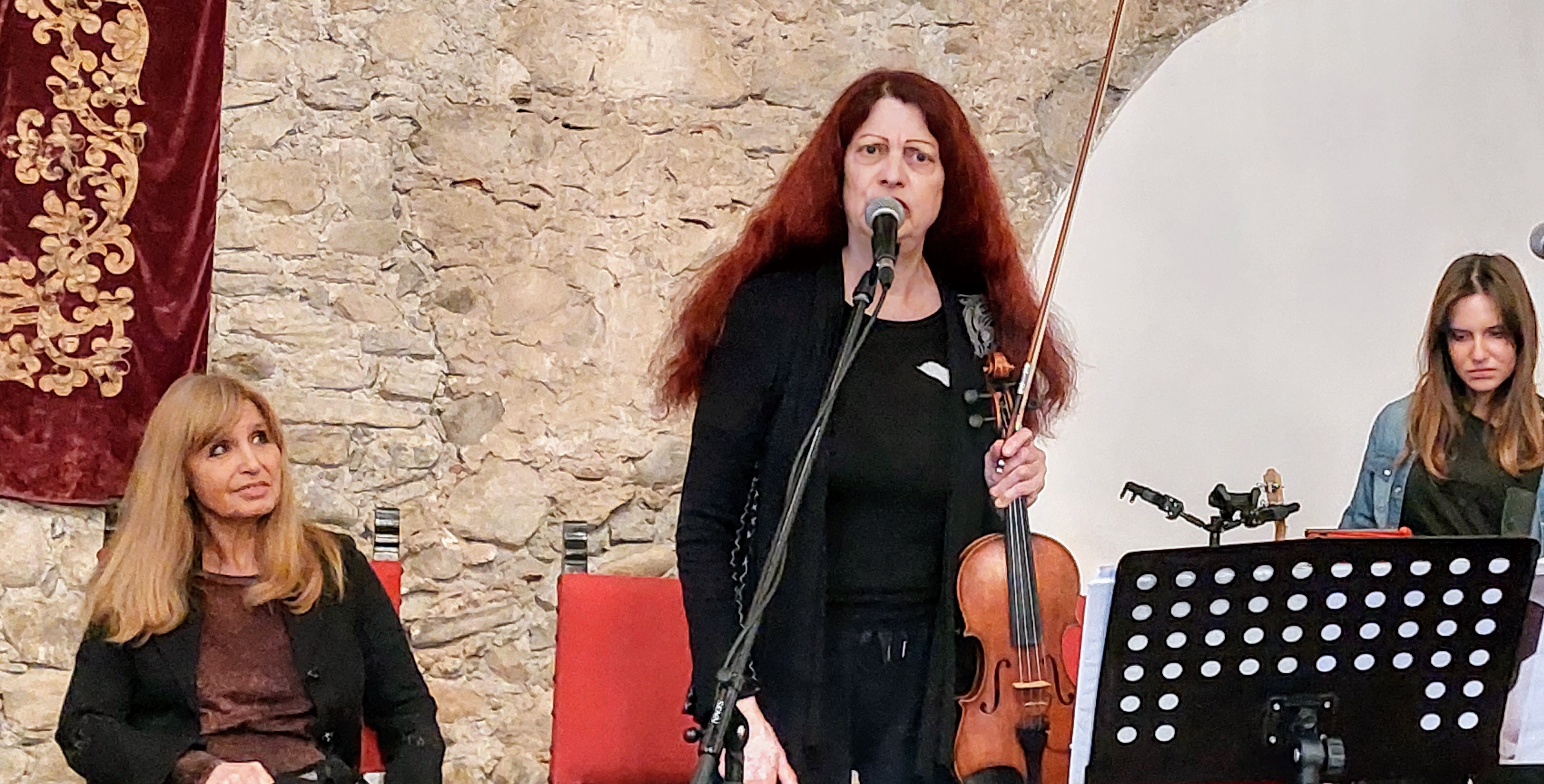 Parole e musica per ricordare Fabrizio De André e Bob Dylan attraverso le testimonianze di due figure femminili che con questi due straordinari cantautori hanno condiviso una parte significativa della propria vita. Un evento d’eccezione, nella splendida cornice del castello Visconti di San Vito, è quello che ha avuto luogo ieri a Somma Lombardo: Dori Ghezzi e Scarlet Rivera hanno reso omaggio al talento e alle immortali canzoni di Faber e di Dylan, dialogando con gli scrittori Giordano Meacci e Francesca Serafini (coautori dell’autobiografia della Ghezzi Lui, io, noi) ed Helena Janacezk. Andrea Parodi e i suoi Borderlobo (Alex Gariazzo alla chitarra, Angie al basso, Riccardo Maccabruni alla fisarmonica e tastiera e l’immancabile tromba di Raffaele Kohler), insieme al mitico violino di Scarlet, hanno accompagnato gli spettatori in un suggestivo viaggio nel mondo incantato di due tra i più grandi songwriters di sempre.