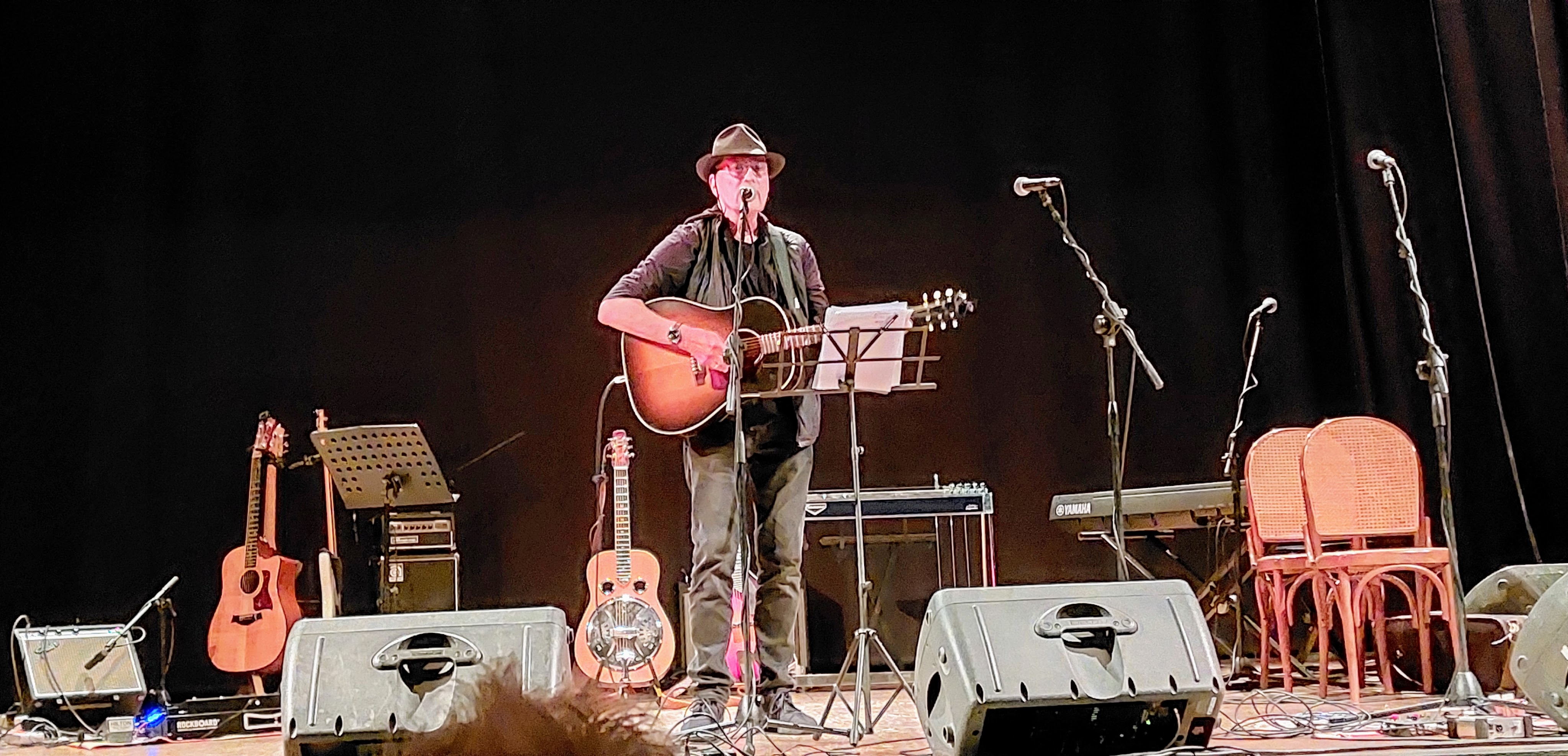Senza retorica, partecipare al festival, in qualità di spettatore o di performer, è come far parte di una grande famiglia. Si respira un’atmosfera amichevole e conviviale prima, durante e dopo la serata. Musicisti e pubblico si incontrano negli spazi intorno al teatro, conversano, si ritrovano e si riabbracciano. Le distanze, quelle a cui la pandemia ci aveva abituati, tornano ad accorciarsi, ed è possibile incontrare e magari trascorrere un po’ di tempo con personaggi del calibro di Scarlet Rivera, la violinista di Desire e del Rolling Thunder Review di Dylan, o Eric Andersen, che ha alle spalle sessant’anni di carriera e che con Van Zandt ha anche inciso un disco, o Tim Grimm, attore e songwriter i cui brani sono sempre ai primi posti nelle classifiche folk USA.