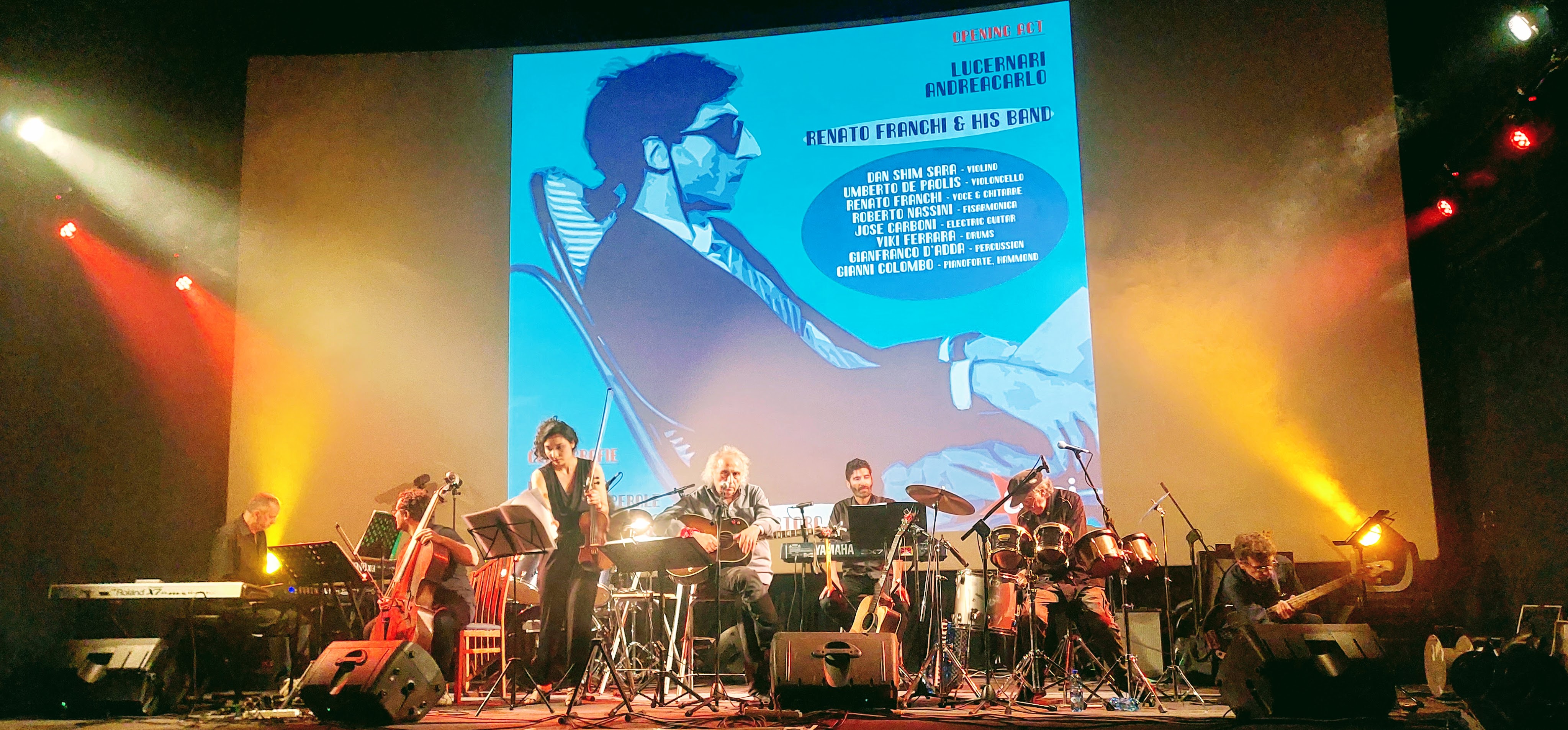 Opening act della serata, il quartetto lecchese Lucernari, che ha offerto una raffinata interpretazione di due sofisticati brani quali Berlin Alexanderplatsz e Chanson Egocentrique; a seguire il cantautore Andreacarlo ha proposto una propria composizione, Stella, e poi Tutto l’universo obbedisce all’amore, canzone del 2008 che Battiato cantò in duetto con Carmen Consoli.