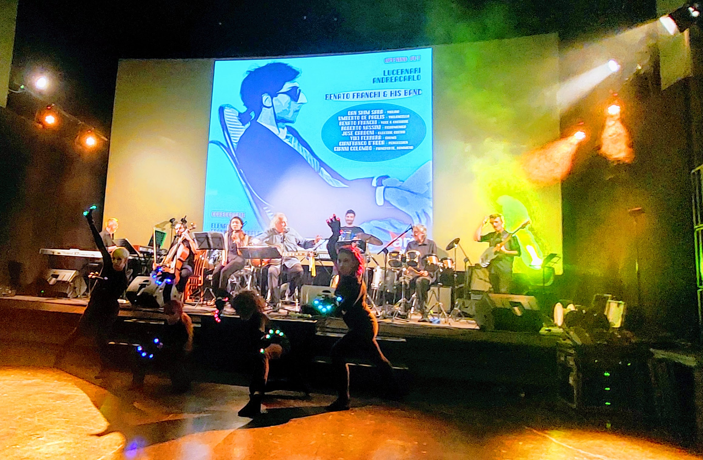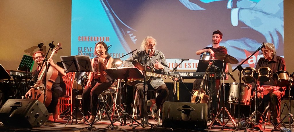 Il songwriter legnanese, che sta riscuotendo lusinghieri risultati con il suo ultimo album Mi perdo e m’innamoro e che di recente ha ottenuto notevole successo sullo stesso palco del cineteatro comasco nella serata dedicata a Fabrizio De André, si è presentato in versione “full band” con il suo ensemble composto dal percussionista Gianfranco D’Adda, presenza di rilievo in quanto membro della sezione ritmica di Battiato per quasi trent’anni, e poi Viki Ferrara alla batteria, Umberto De Paolis al violoncello, Dan Shim Sara Galasso al violino, Gianni Colombo (pianoforte, tastiere e organo Hammond), Roberto Nassini (fisarmonica e tastiera) e Joselito Carboni (chitarra elettrica e basso).