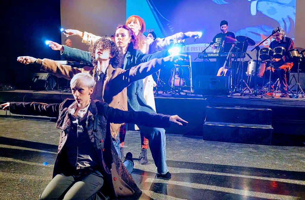 La particolarità del tributo realizzato da Franchi e dai suoi musicisti consiste nell’aver abbinato canzoni scelte tra grandi successi e qualche rarità a brevi momenti di narrazione e alla danza, con le eleganti coreografie di Elena Lago, sospese tra intensa drammaticità e una teatralità a tratti fortemente emotiva, a volte ironica e liberatoria. La performance si è aperta con un assolo della danzatrice sulle note della versione originale del brano L’ombra della luce. Il velo nero che la avvolgeva, in un continuo celare e disvelare, voleva simboleggiare l’alternarsi delle “forze contrarie”: la pace e la gioia terrena, secondo il musicista catanese, sono soltanto, infatti, “l’ombra della luce”, perché nessuna esperienza tangibile è paragonabile alla beatitudine che deriva dalla fusione con il divino.