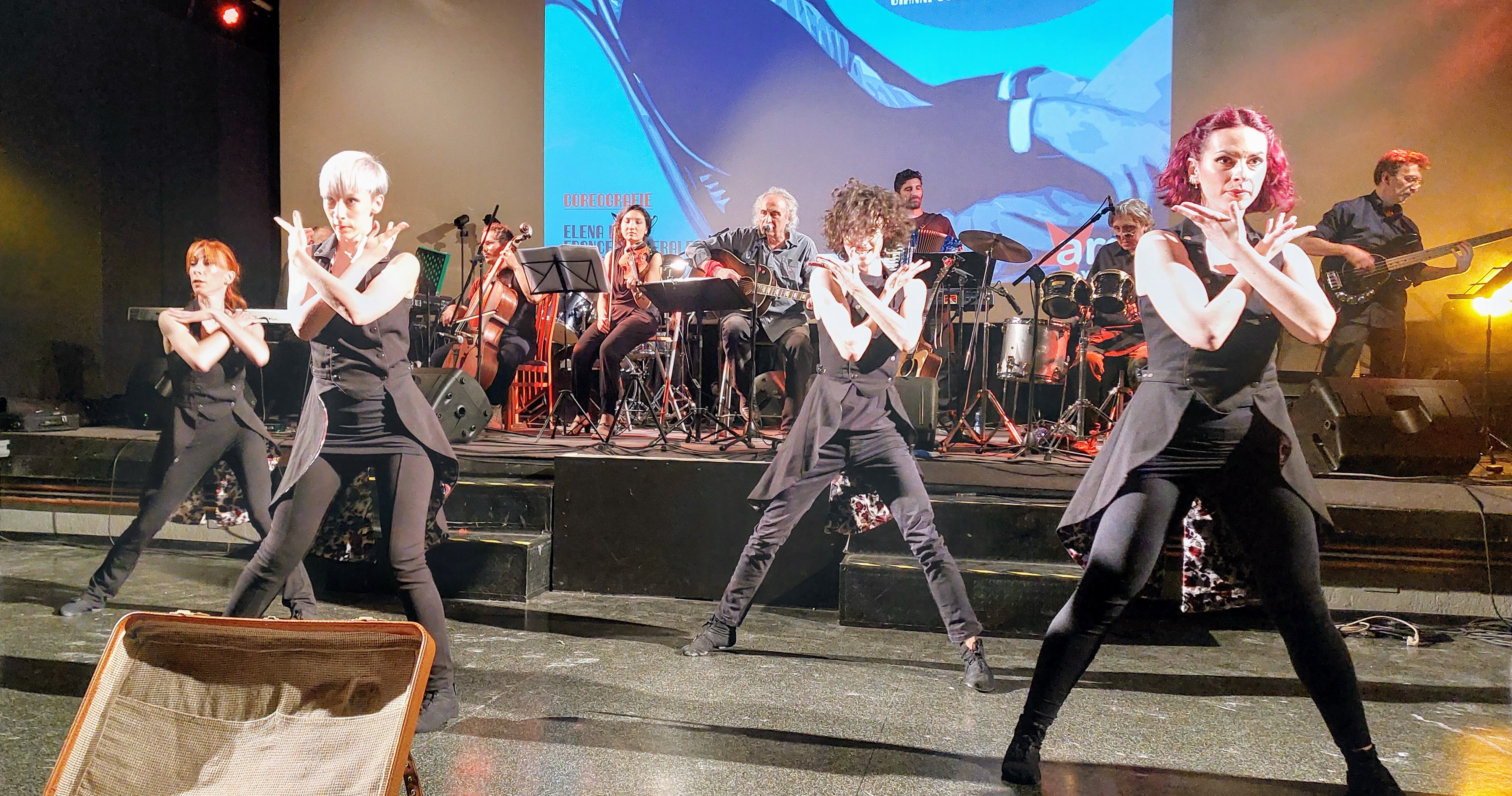 La particolarità del tributo realizzato da Franchi e dai suoi musicisti consiste nell’aver abbinato canzoni scelte tra grandi successi e qualche rarità a brevi momenti di narrazione e alla danza, con le eleganti coreografie di Elena Lago, sospese tra intensa drammaticità e una teatralità a tratti fortemente emotiva, a volte ironica e liberatoria. La performance si è aperta con un assolo della danzatrice sulle note della versione originale del brano L’ombra della luce. Il velo nero che la avvolgeva, in un continuo celare e disvelare, voleva simboleggiare l’alternarsi delle “forze contrarie”: la pace e la gioia terrena, secondo il musicista catanese, sono soltanto, infatti, “l’ombra della luce”, perché nessuna esperienza tangibile è paragonabile alla beatitudine che deriva dalla fusione con il divino.