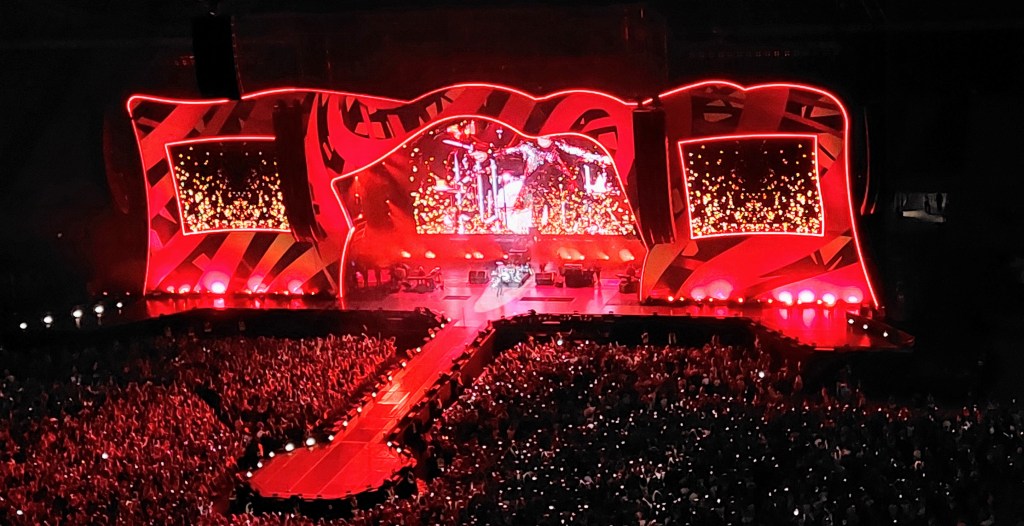 Straordinaria l’ovazione quando, alla presentazione dei componenti della band che ha avuto luogo più o meno a metà concerto, dopo la già citata Women, è seguita quella dei membri storici, prima Wood e poi Richards. Keith, dopo l’acclamazione, ha eseguito due brani, You Got The Silver (il primo pezzo, tratto da Let It Bleed del 1969, che vide il chitarrista nei panni di lead vocalist) e Connection. “A Milano fa più caldo che nel quinto girone dell’inferno” è stata una delle osservazioni del frontman, ma lo stadio era davvero in fiamme, e non solo per le temperature elevate causate dall’anticiclone africano. Fans scatenati sotto il palco, ma grandi emozioni anche sugli spalti, fino all’ultima fila del terzo anello. Verso la fine Mick sfoggia un soprabito nero di paillettes, come lui solo può, e la serata si conclude con una tripletta esplosiva: Jumpin’ Jack Flash, una pausa e poi Gimme Shelter – durante la quale la scenografia ha richiamato il giallo e l’azzurro della bandiera ucraina – e, ovviamente, Satisfaction per il gran finale.
