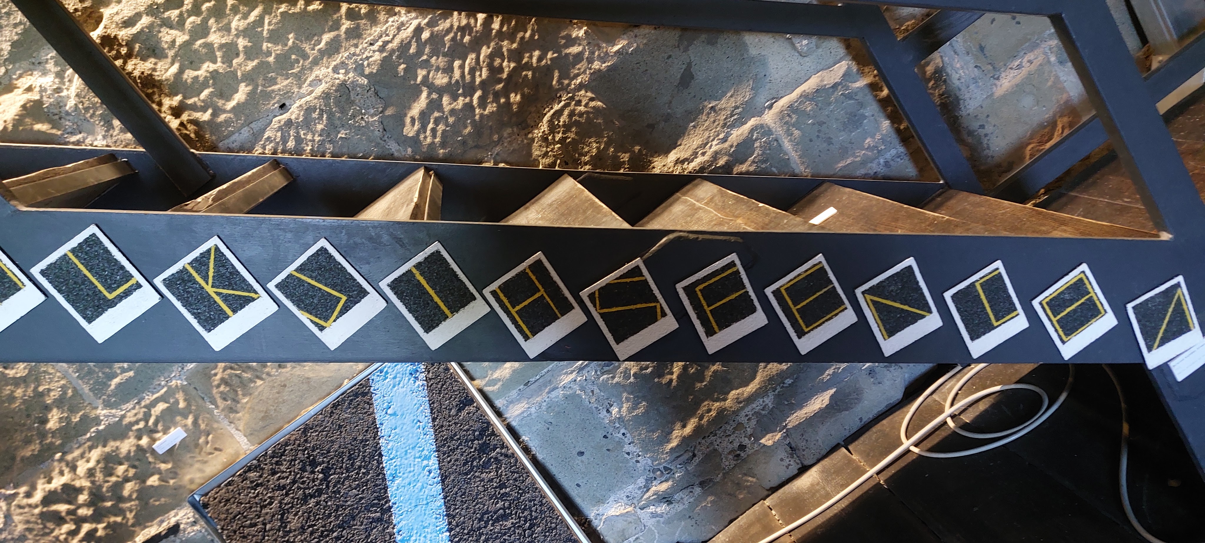 Al Baradello le lettere di questo alfabeto, sotto forma di piccole tavole simili a istantanee Polaroid, sono posizionate sul corrimano che conduce al piano superiore. È presente poi un rimando al lago di Como nelle linee di un parcheggio a pagamento che sono state in parte “strappate” all’asfalto nella forma di una Y rovesciata che ricorda, appunto, la forma del Lario.