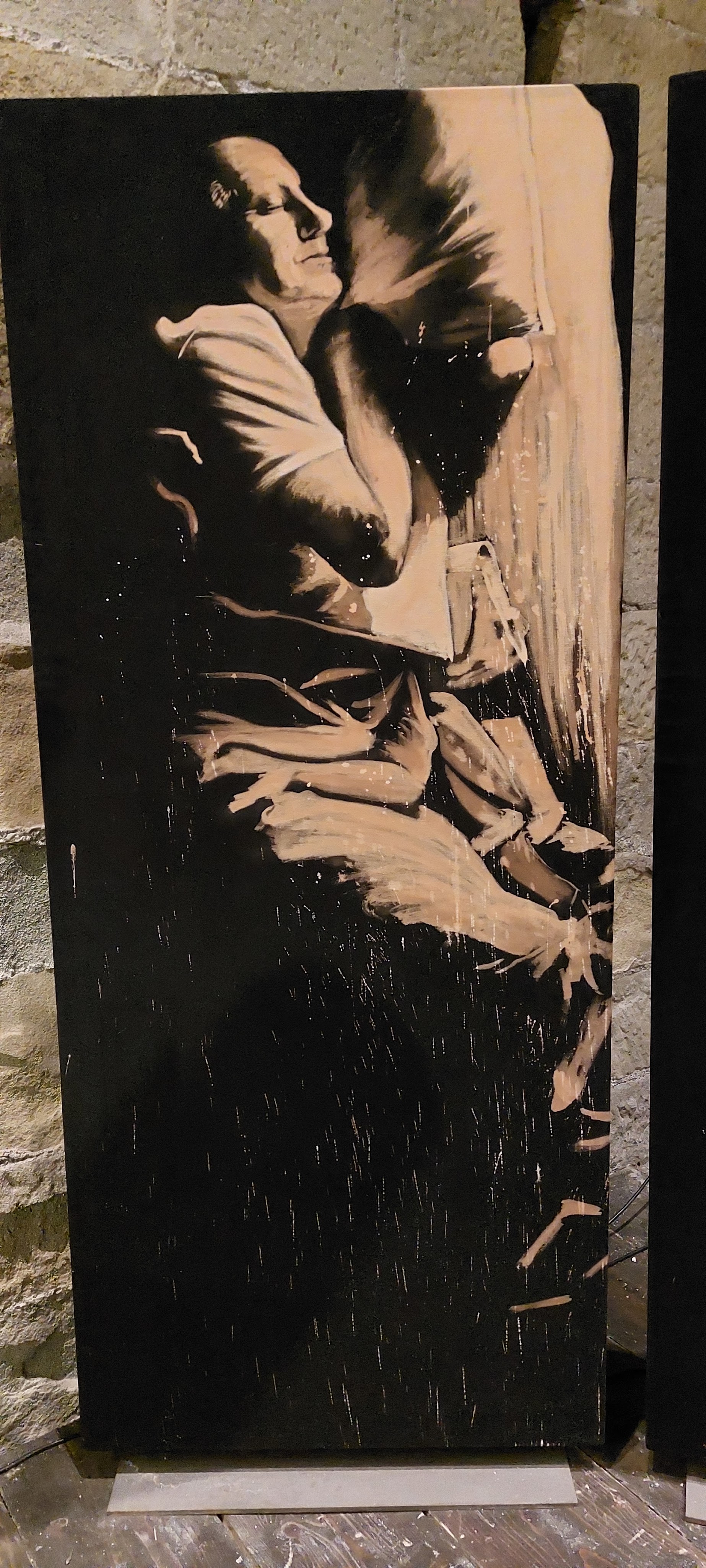 Lo storico edificio si configura nuovamente, dunque, come suggestiva cornice per lavori molto diversi tra loro, in un inedito connubio ideato dallo stesso artista comasco e realizzato grazie all’associazione Slow Moon, che aveva già organizzato la precedente mostra, “La Luna e il Medioevo” di Marcella Chirico, di cui avevo già avuto occasione di parlare qualche mese fa.