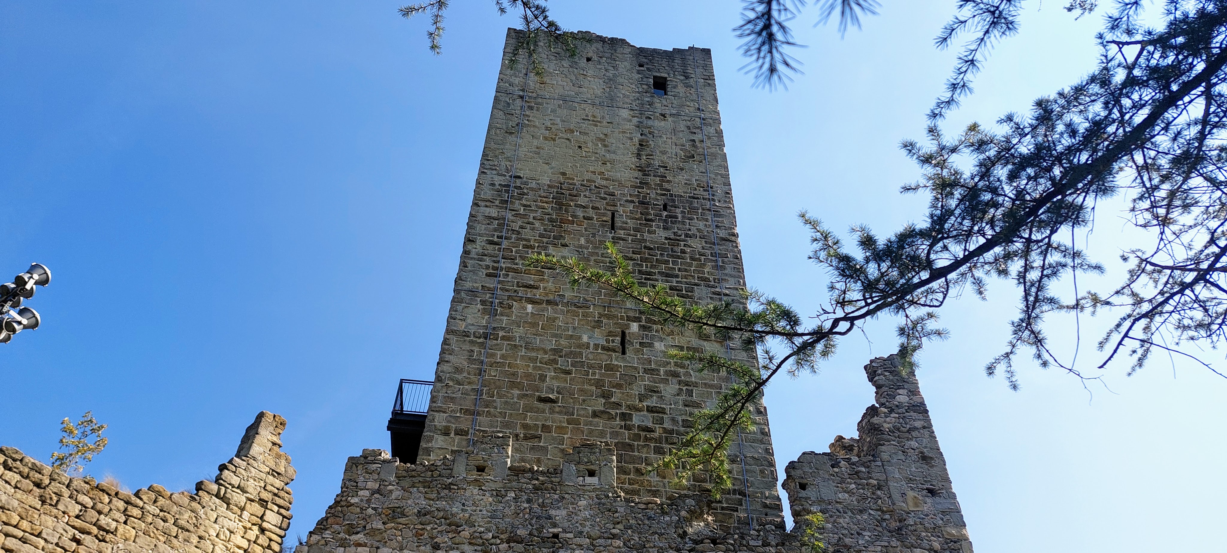 Salendo le scale verso la sommità della torre, incontriamo una veduta di Arezzo e un ritratto di Giuseppe Sinigaglia, canottiere comasco caduto nella Prima guerra mondiale a cui è intitolato lo stadio cittadino. A questo punto, dopo gli ultimi gradini, è possibile contemplare lo splendido panorama che si può godere dalla balconata.