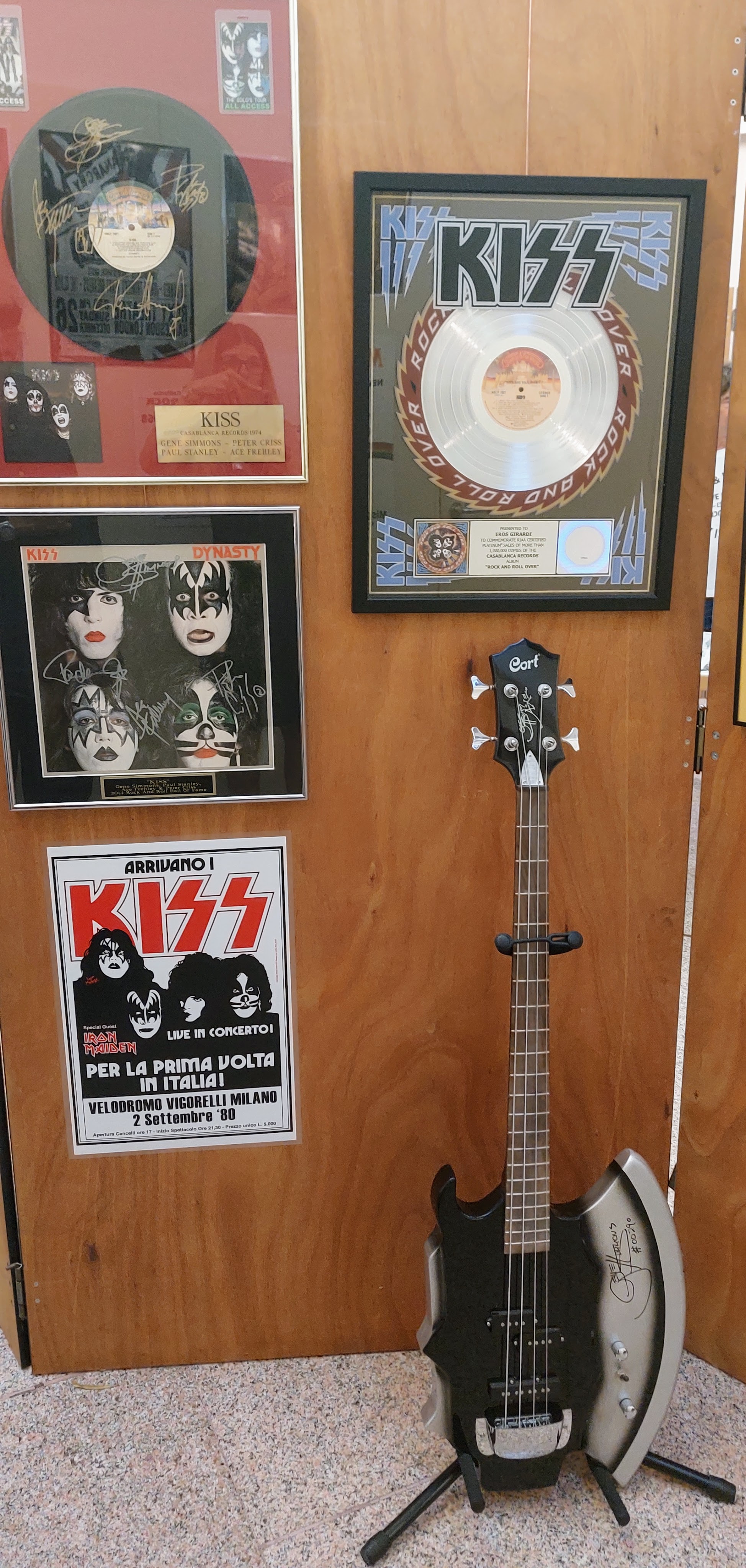 L’amicizia tra Claudio ed Eros Girardi dura da trent’anni: i due si incontrarono casualmente in un negozio di dischi in cui lavorava la futura moglie dello stesso Girardi. Quest’ultimo ha iniziato la propria collezione proprio trent’anni fa e ha messo insieme i pezzi che la compongono con molto impegno e dedizione. “Con internet, oggi, è molto più facile procurarsi dischi e oggetti rari” spiega. “In passato bisognava passare attraverso riviste specializzate, fiere, mercatini ed aste, come Sotheby’s o Christie’s a Londra”. La passione di Girardi è iniziata con i Deep Purple per poi estendersi ad altre band e musicisti. Naturalmente la sua casa è simile ad un museo per la grande quantità di materiale che contiene. Tra i cimeli più originali, la chitarra di Alice Cooper nella custodia bianca a forma di bara. Un aneddoto interessante, poi, riguarda l’acquisto di una pelle della batteria di Charlie Watts: “Non ero intenzionato a comprarla, ma poi il venditore ha abbassato il prezzo e mi sono convinto… due giorni dopo, purtroppo, il batterista degli Stones è scomparso e automaticamente il cimelio è divenuto – tristemente – di valore inestimabile”.
