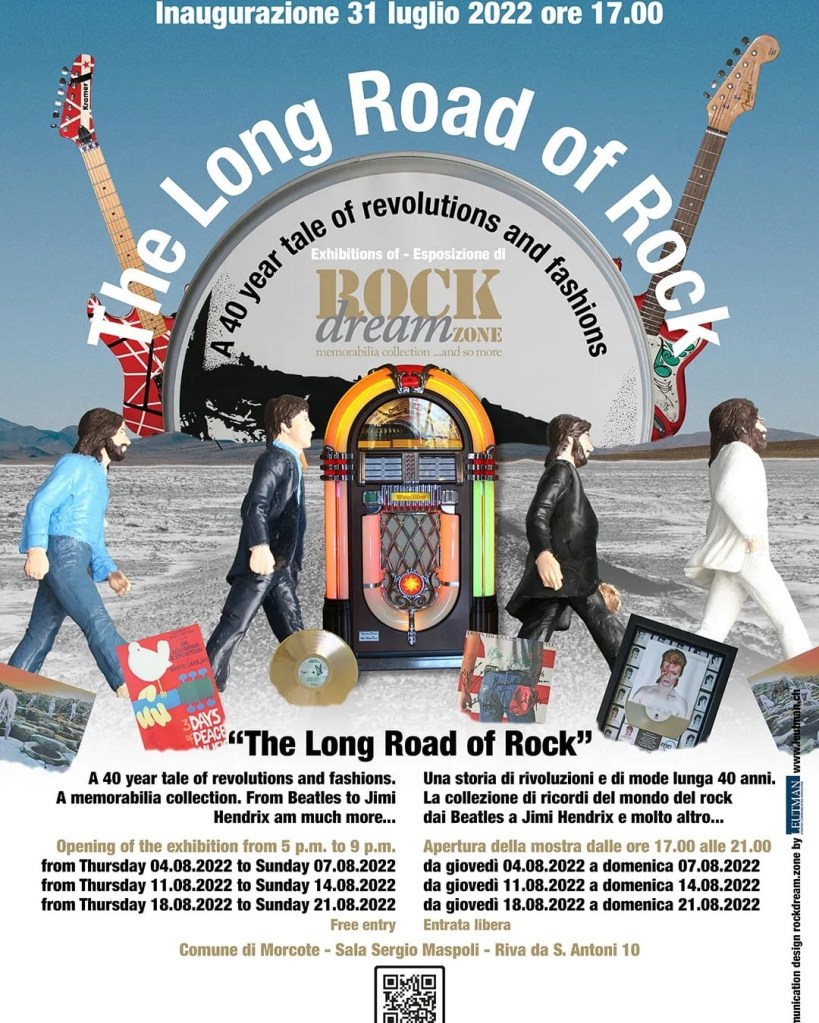 “The Long Road of Rock” accompagnerà dunque i visitatori in un ideale viaggio che toccherà le tappe più importanti della storia del rock, dai Sixties agli anni Duemila. L’evento fa parte della più ampia rassegna “Summer in Morcote”, che comprende concerti ed altre manifestazioni a carattere culturale nel corso del periodo estivo.