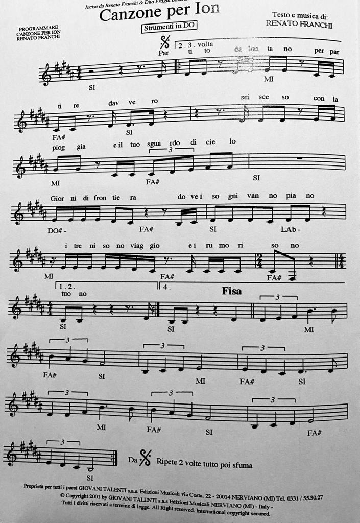 Canzone per Ion – racconta Renato – è una instant song scritta di getto sull’onda della sensibilità emotiva legata al dovere di raccontare per non dimenticare. Il brano fu portato nelle settimane e mesi successivi nelle scuole e in eventi specifici sul tema dell’immigrazione, degli infortuni e delle malattie professionali. Il cantautore e Nicoleta incontrarono tanti studenti e persone ed ogni volta il racconto della vicenda e l’ascolto della canzone suscitavano forti emozioni. In seguito la traccia, con un nuovo arrangiamento, che vide la partecipazione di Marino e Sandro Severini dei Gang, fu inserita nell’album “Sogni e Tradìmenti” di Renato Franchi & Orchestrina del Suonatore Jones ed è tuttora una parte importante dei concerti live di Franchi e della sua band.