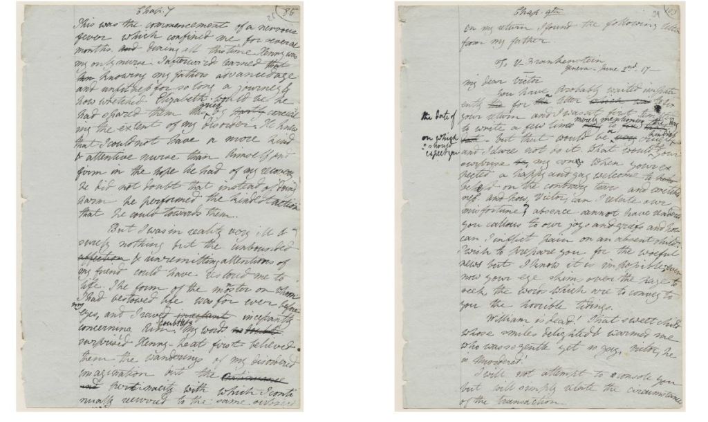 Manoscritto di “Frankestein” (1816-17) conservato alla Bodleian Library di Oxford