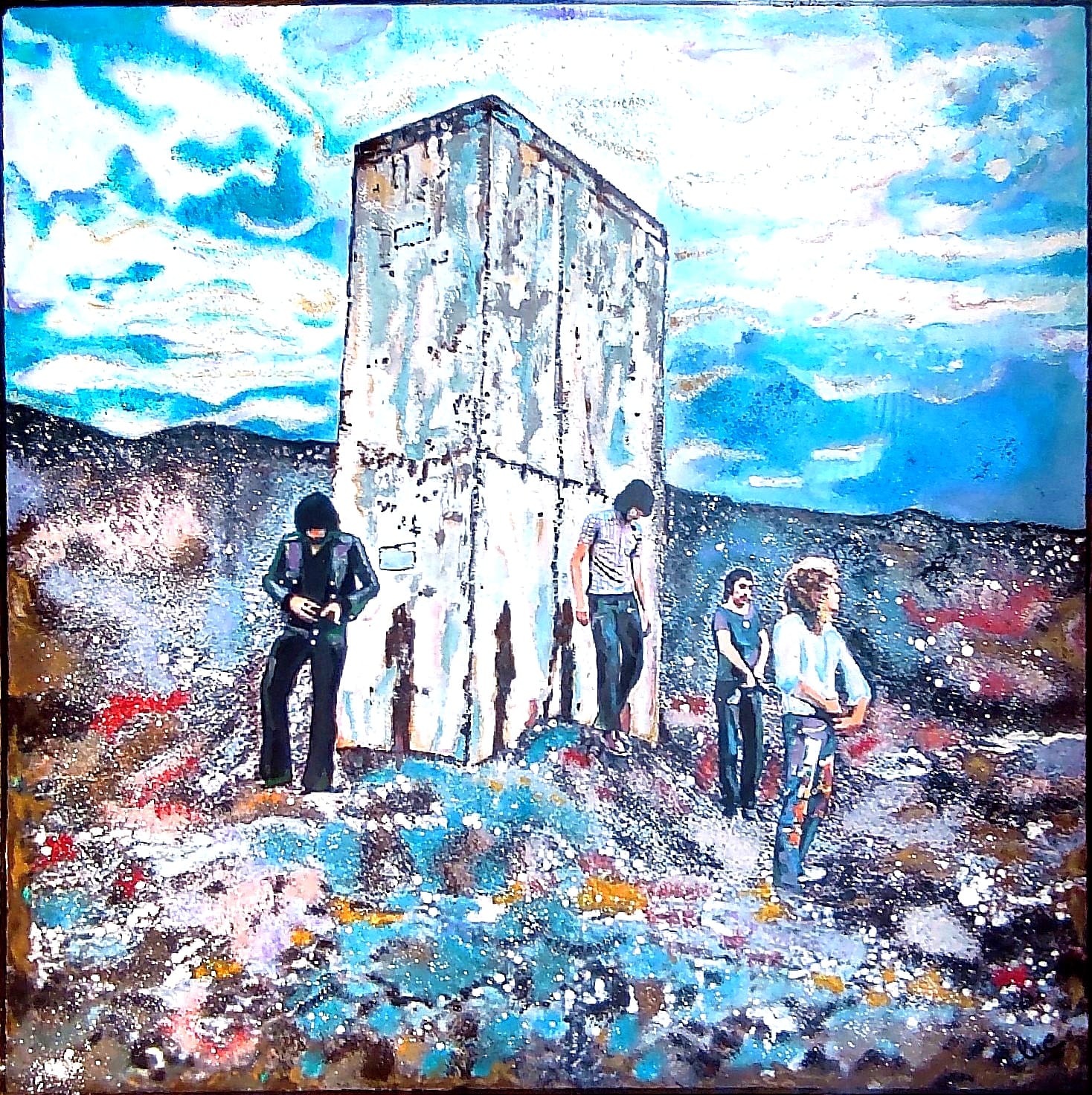 People try to put us d-down di Francesco Biondo è invece una rilettura dell’iconico scatto di Art Kane che campeggia sulla cover di The Kids Are Alright, in cui i Quattro sonnecchiano avvolti in una coperta che ha i colori della Union Jack. Anche Monica Cristaldi ha scelto di rielaborare una copertina, quella di Who’s Next: l’elemento architettonico al centro della scena, sul quale Townshend, Daltrey, Moon ed Entwistle hanno appena lasciato traccia del loro passaggio, per così dire, diviene elemento costitutivo di una città invisibile. I Am the Sea di Jeanfilip fa invece riferimento al brano che apre Quadrophenia per riflettere sul rapporto tra uomo e natura, in un quadro di forma circolare che allude all’aprirsi e chiudersi dell’album con i suoni del mare.