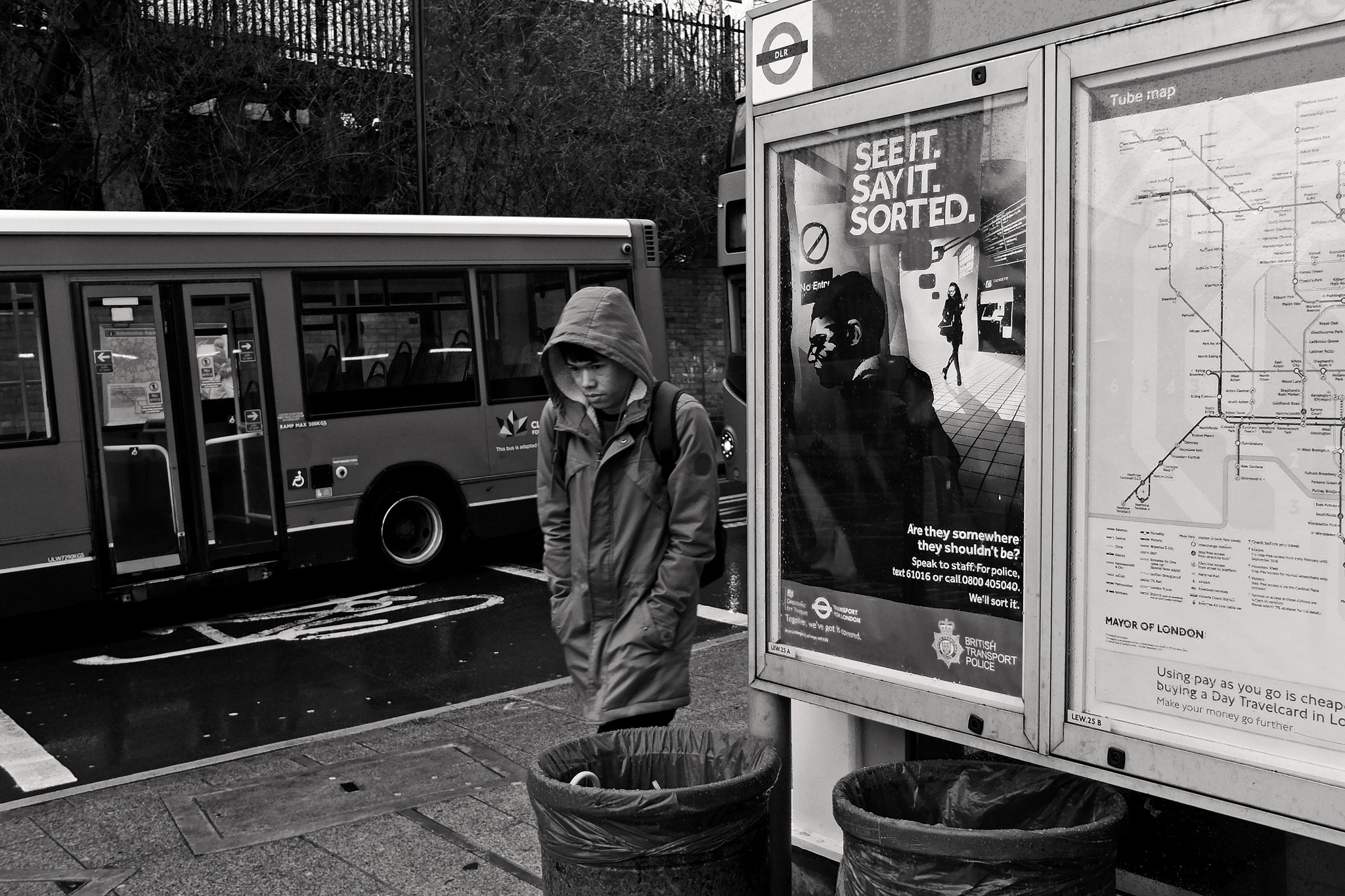 La seconda parte dell’allestimento era situata al piano superiore della galleria e si componeva di una serie di scatti in b/n di Matteo Ceschi, dal titolo Quadrophenia 2023: New Adventures for New Jimmys. A cinquant’anni dalla realizzazione del mitico lungometraggio, il fotografo ha voluto ripercorrere i luoghi londinesi in cui il film era ambientato, individuandone aspetti e figure che rievocassero le atmosfere di mezzo secolo fa. Ad arricchire l’esposizione, il video The Real Me realizzato dallo stesso Ceschi con Federico Ramponi e la colonna sonora di Tiberio Longoni. L’intento era non tanto quello di fare semplicemente tappa nelle location a suo tempo immortalate da Ethan Russell, ma di indagare le nuove forme di disagio che affliggono oggi la metropoli britannica. Lo sguardo di Ceschi si è pertanto calato con circospezione nella quotidianità della vita cittadina, alla ricerca di “nuovi Jimmy” per raccontare l’Inghilterra post-Brexit senza pregiudizi né sconti, un po’ alla maniera di Ken Loach, ma utilizzando lo strumento della street photography.