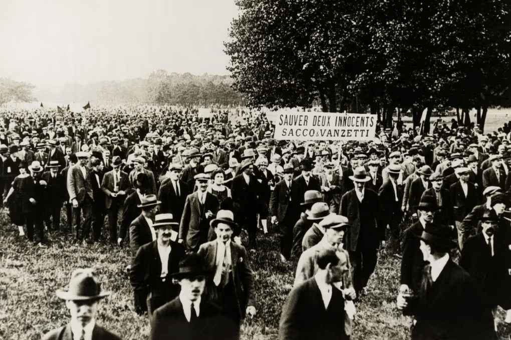 La notizia dell’esecuzione fece rapidamente il giro del mondo e in molte città – Ginevra, Odessa, Parigi, Londra, San Francisco, Sydney – ci furono disordini e proteste antiamericane. Anche il regime fascista, che aveva assistito indifferente alle vicende processuali per l’identità politica dei condannati, commissionò sui quotidiani roboanti titoli per “l’italianità offesa”. Cinque giorni dopo, il 28 agosto, si tennero i funerali dei due anarchici, dei quali vennero vietate le riprese. Centinaia di migliaia di persone, tra duecentomila e cinquecentomila, parteciparono al corteo funebre, mentre le poche pellicole di cineoperatori indipendenti vennero sequestrate e distrutte per contenere l’eco mediatico, che tuttavia fu enorme. E, come spesso accade, fu soprattutto l’arte a consegnare alle successive generazioni la memoria di Sacco e Vanzetti, nei romanzi di Dos Passos, Sinclair e Howard Fast, nella poesia, nel teatro, nelle arti figurative. Nel 1960 venne poi pubblicato Ballads of Sacco and Vanzetti, un concept album contenente undici brani composti da Woody Guthrie tra il 1946 e il 1947. La rappresentazione forse più memorabile della vicenda, però, è quella del film di Giuliano Montaldo del 1971, grazie allo straordinario talento degli interpreti e alla colonna sonora. Here’s To You è divenuta un autentico inno che ha contribuito a tramandare il ricordo di due figure, simbolo di tanti umiliati e offesi e vittime del potere, che rimarranno “per sempre nei nostri cuori”.
