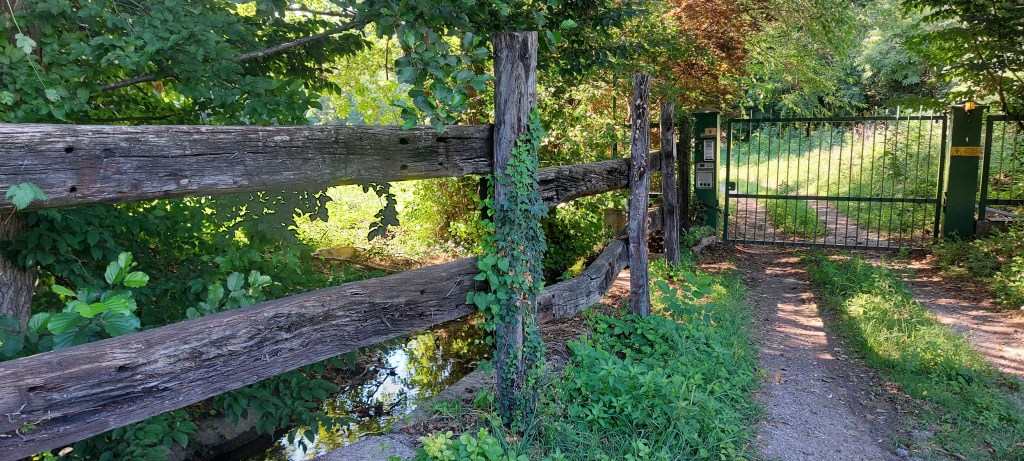 Il parco, quasi tutto pianeggiante, contempla anche una piccola collina ed è attraversato da un ruscello, utilizzato in passato per alimentare le pale del vecchio mulino. La cascina, “che necessita di alcuni interventi”, dispone di “ampi locali di rappresentanza al piano terra con caratteristico porticato che si ripresenta anche al primo piano” (cit.) ed include 10 camere e 5 bagni.
