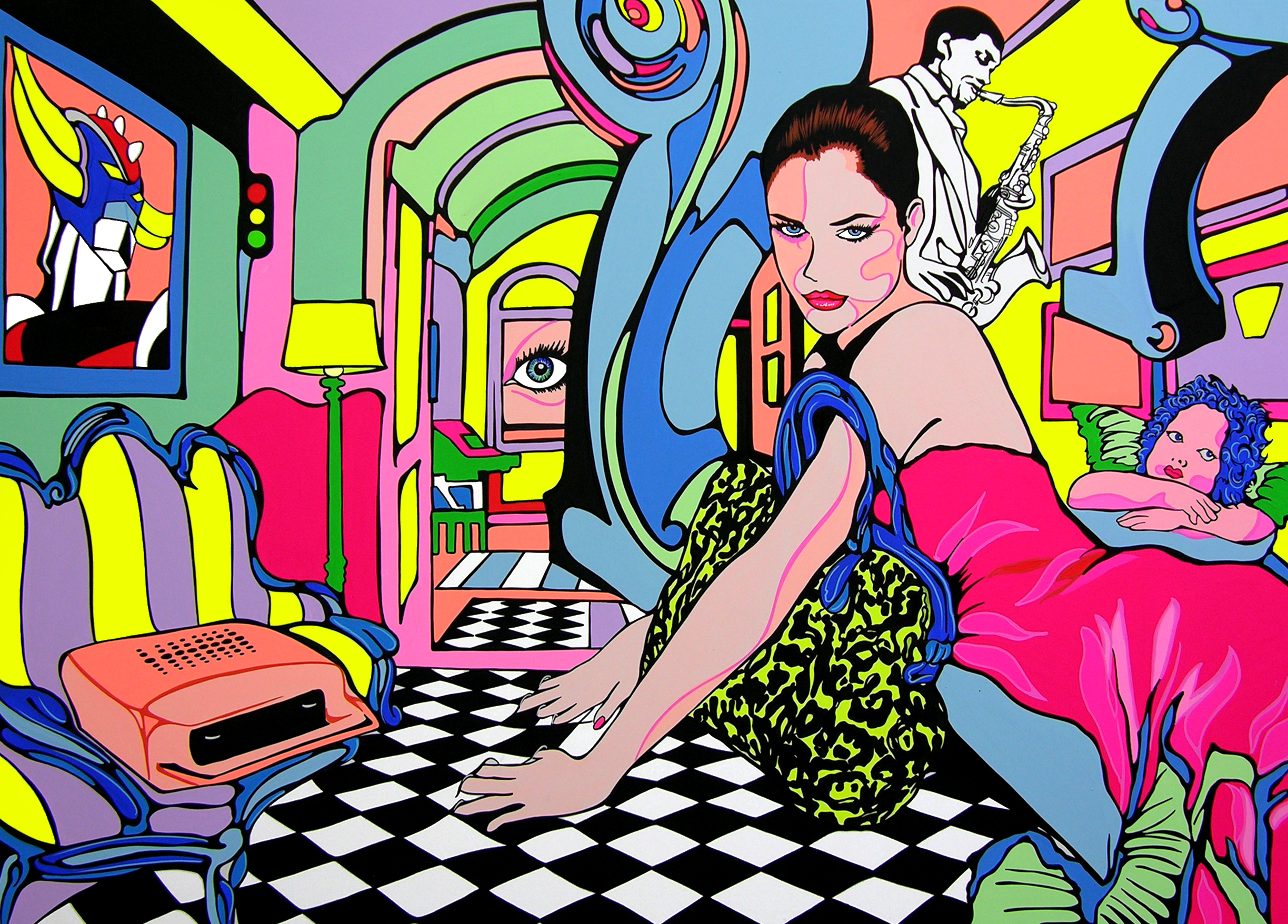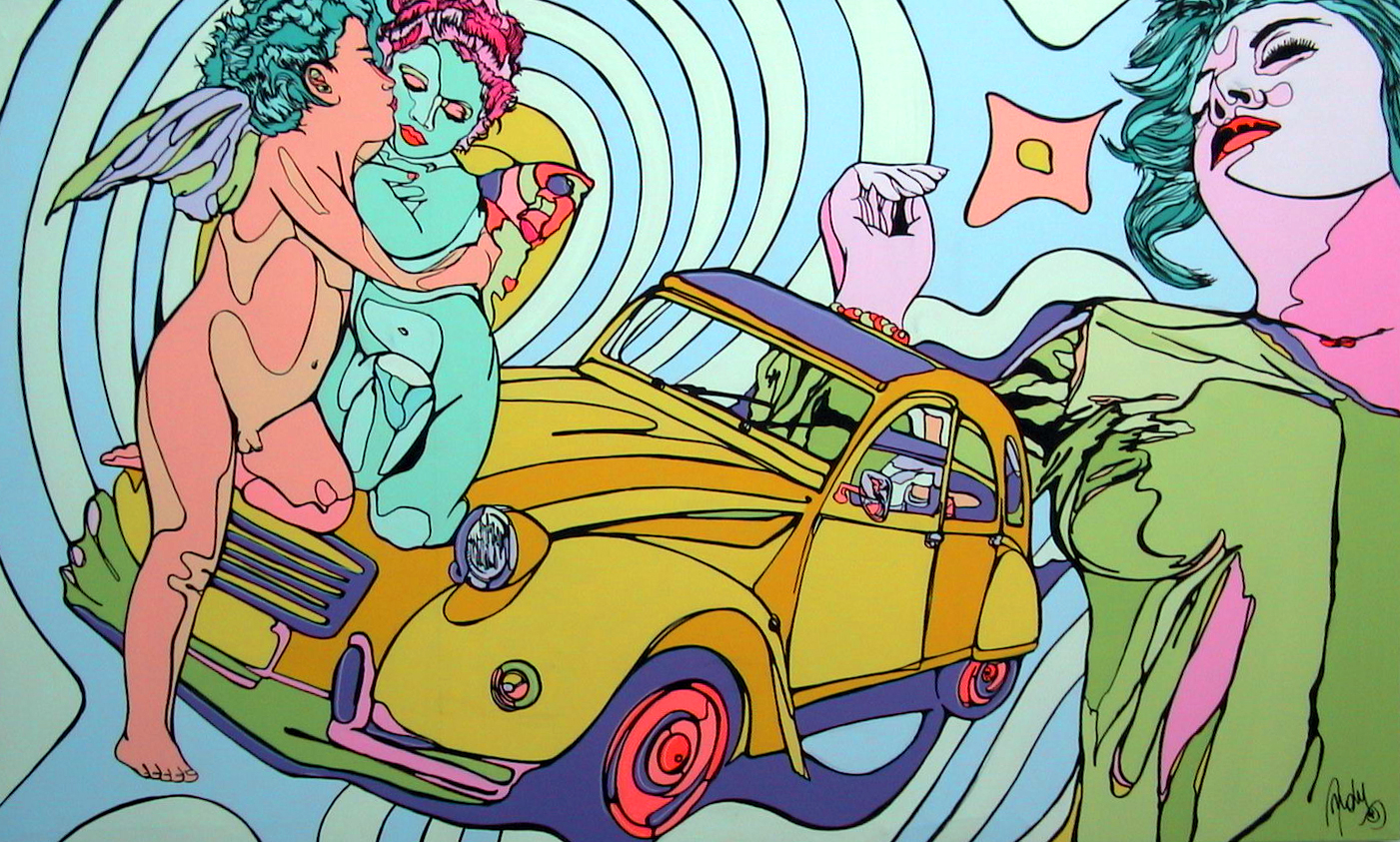 In seguito, la Pop Art americana della fine degli anni ‘70 e della prima metà degli anni ‘80 hanno ispirato il mio tratto e l’utilizzo del colore fluorescente. L’Oriente è arrivato in seguito, anche per via dei miei viaggi nel Sud-est asiatico, dove sono stato ispirato dalla similitudine che c’è nella sintesi della natura scolpita nei templi e l’Art Nouveau parigina degli anni 20.